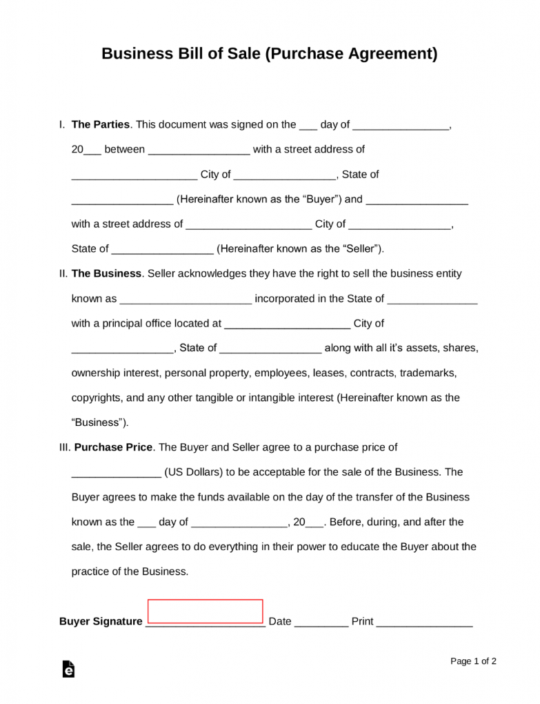 Business Bill of Sale Form