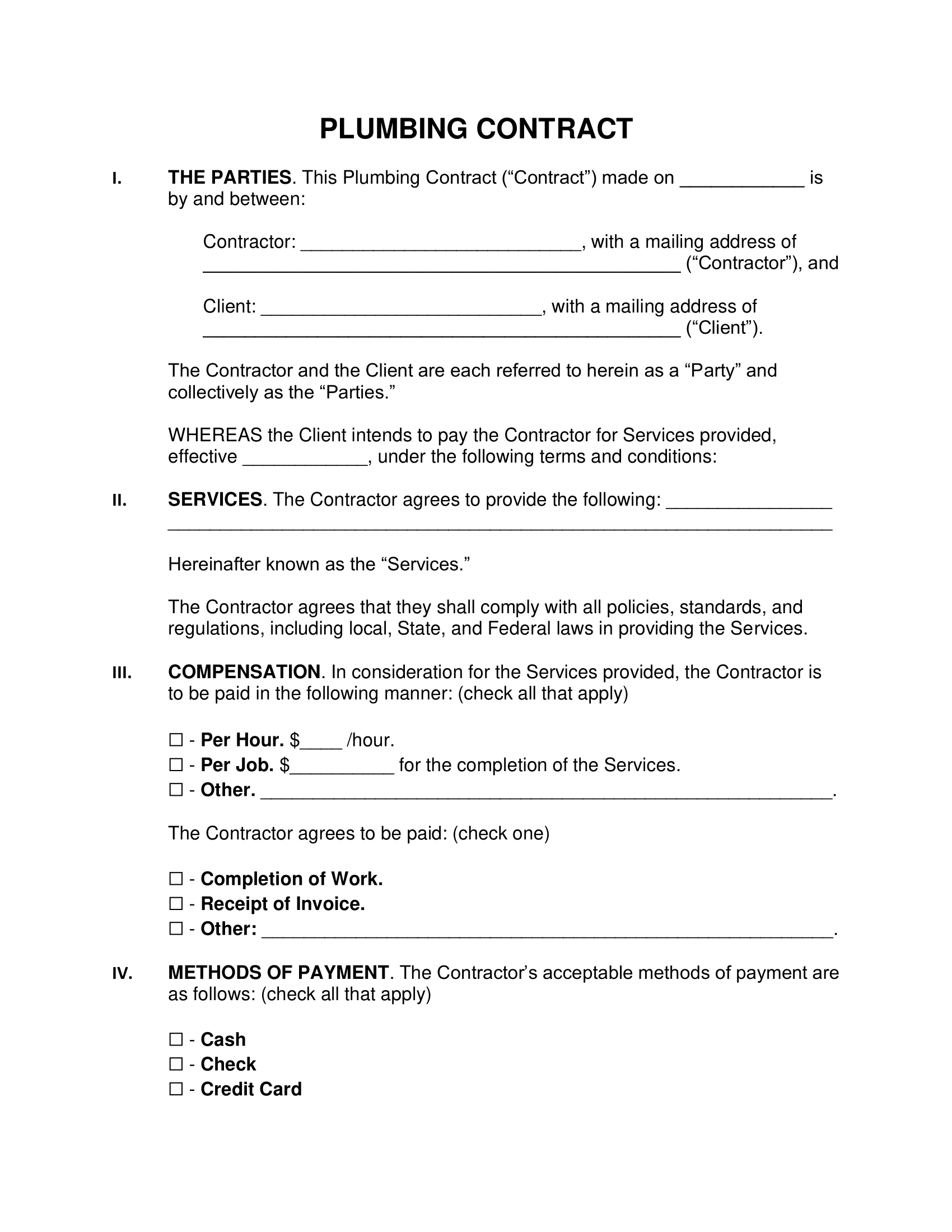 Will this contract also outline the scope of work, timeline for completion, and any warranties or guarantees provided by your plumbing business?