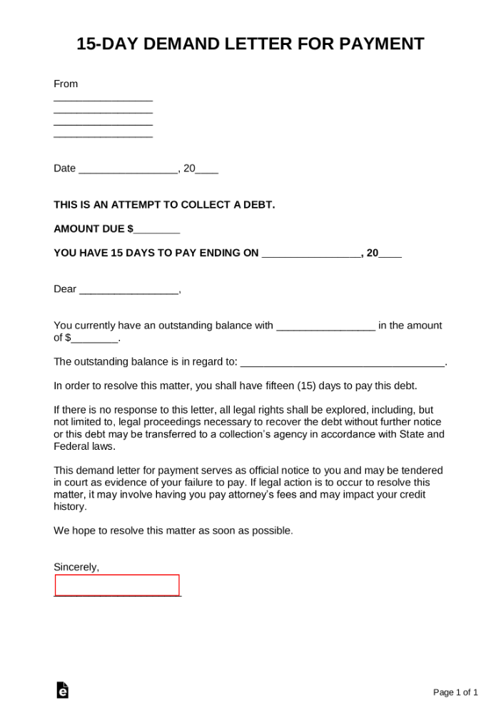 15-Day Demand Letter for Payment