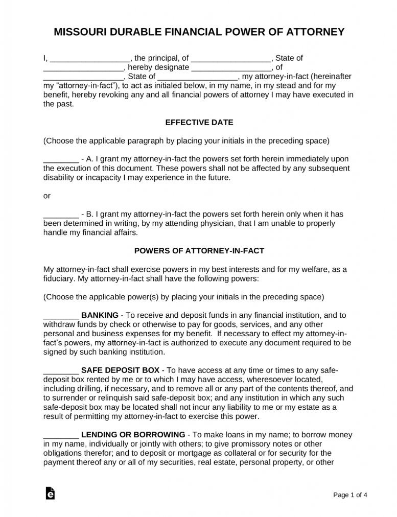 [MO] What are the legal requirements for our durable power of attorney form to be valid and accepted by banks?