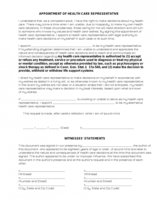 [CT] Does a medical directive in Connecticut need to be notarized to be legally valid, or are witnesses sufficient?