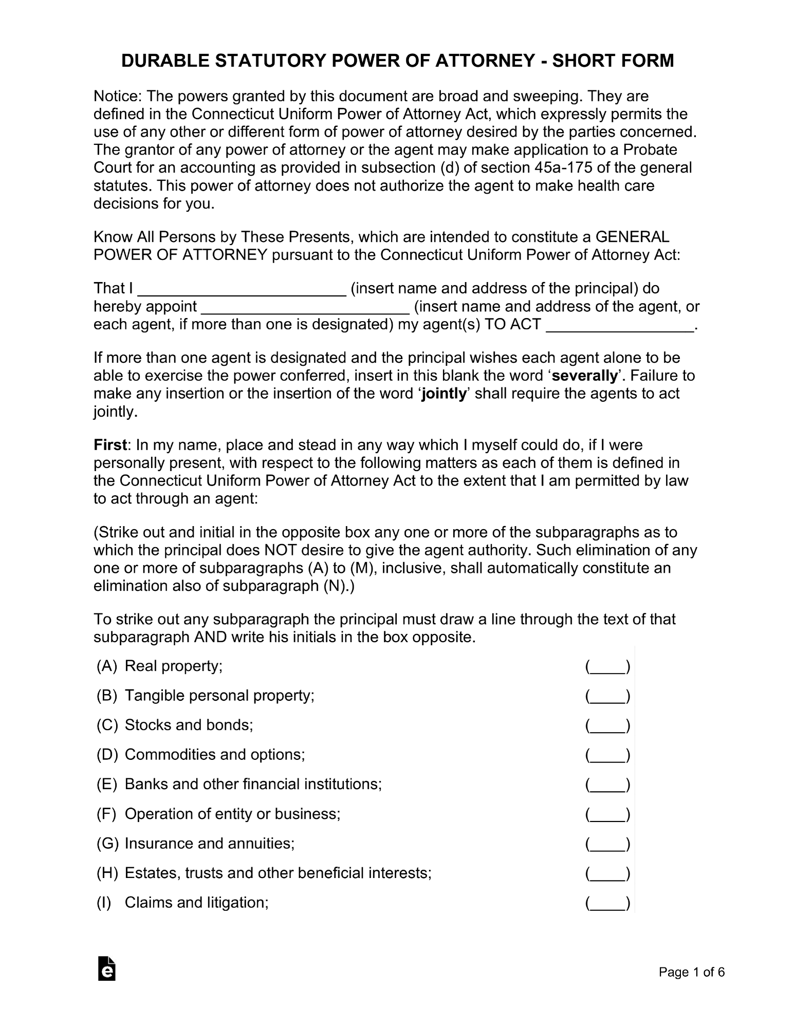 Connecticut Durable Power of Attorney Form