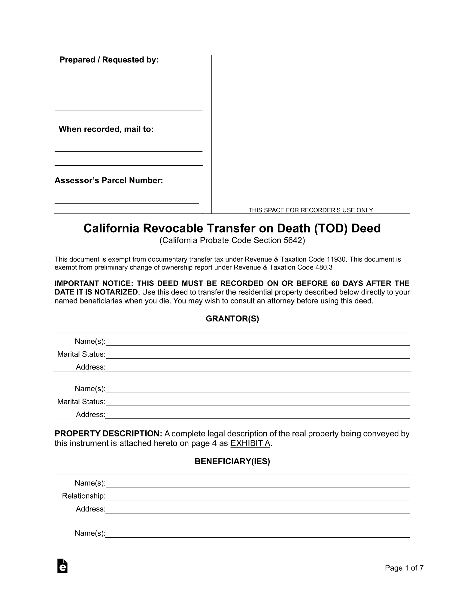 California Revocable Transfer on Death Deed