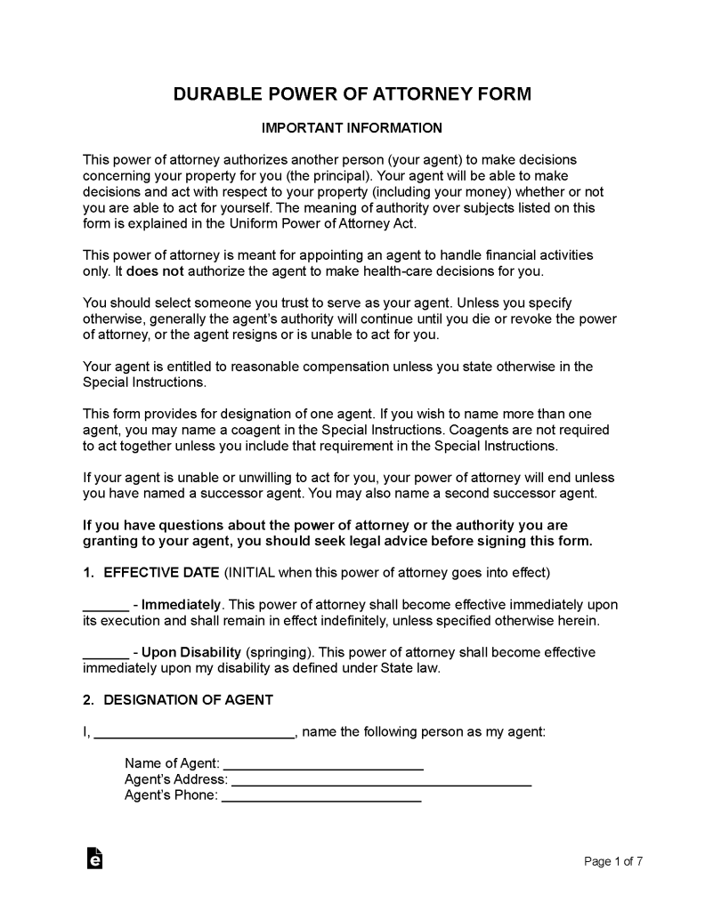 Durable (Financial) Power of Attorney