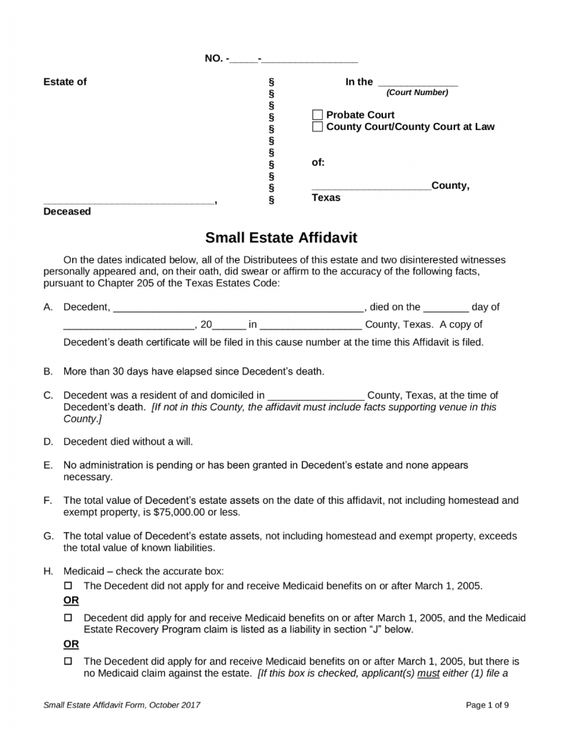 Texas Small Estate Affidavit Form