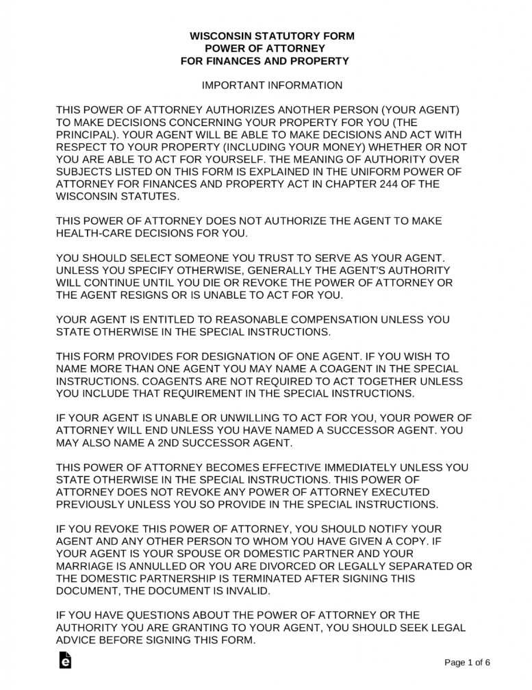 Wisconsin Durable (Statutory) Power of Attorney Form
