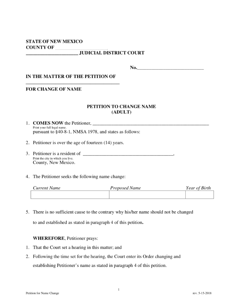 New Mexico Name Change Form | Petition