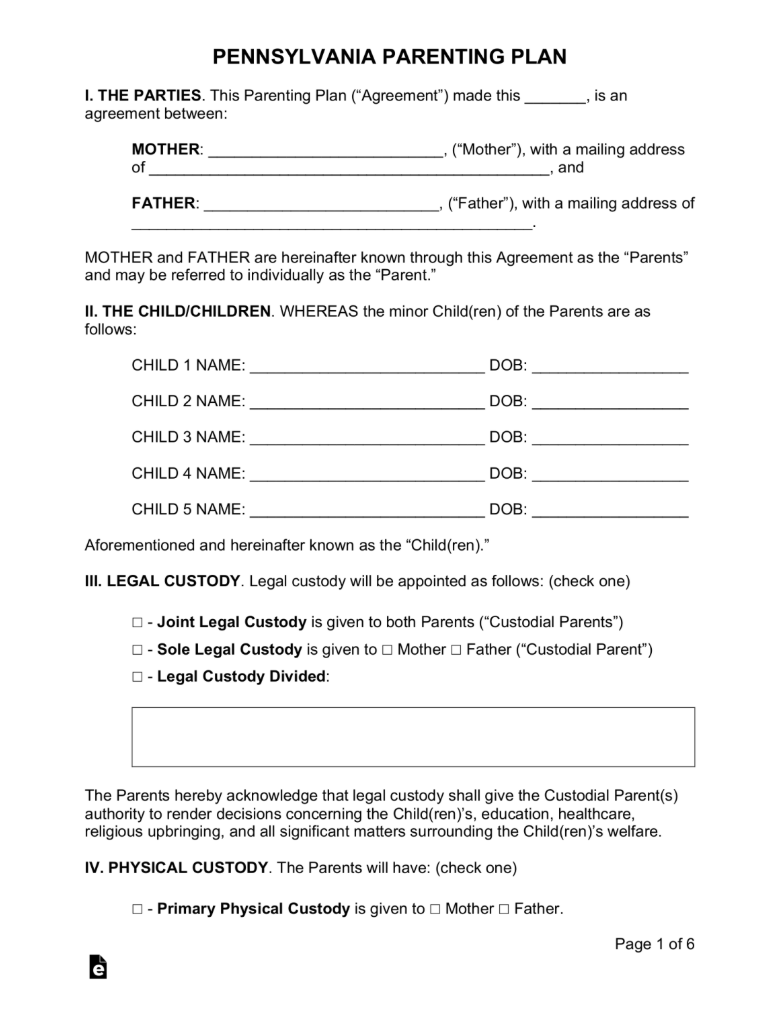 Can a notarized parenting plan for relocating children from Pennsylvania to California be enforced without a court order?