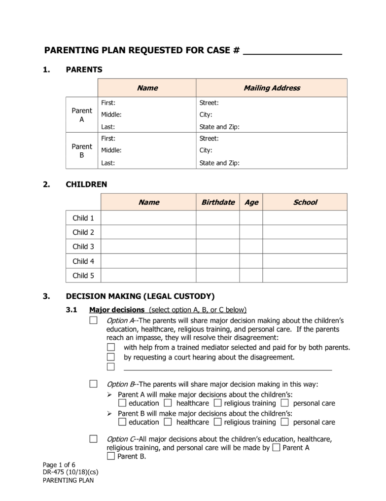 Alaska Custody (Parenting Plan) Agreement | Form DR-475