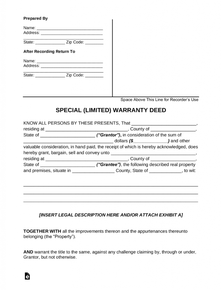 Special Warranty Deed Form