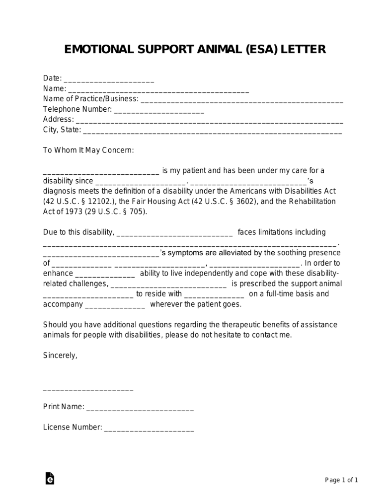 Emotional Support Animal (ESA) Letter