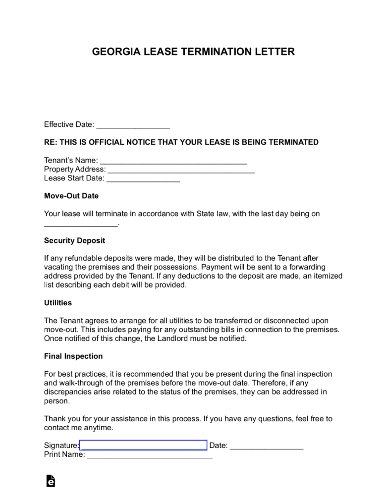 Georgia Lease Termination Letter Form – 30/60 Days