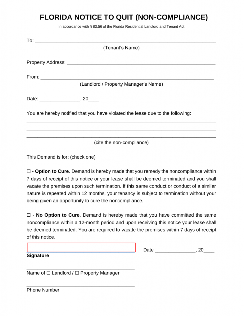 Florida 7-Day Notice to Quit Form | Non-Compliance