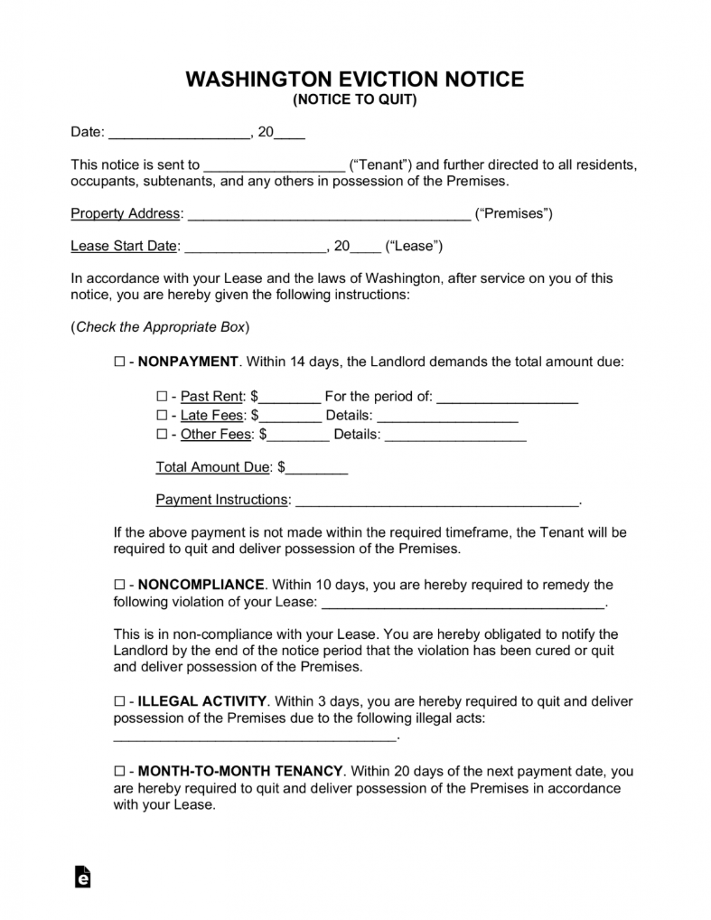 Washington Eviction Notice Form
