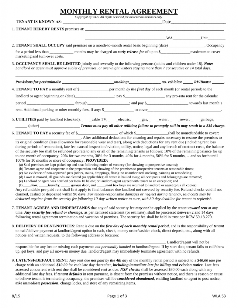 Washington Month-to-Month Lease Agreement