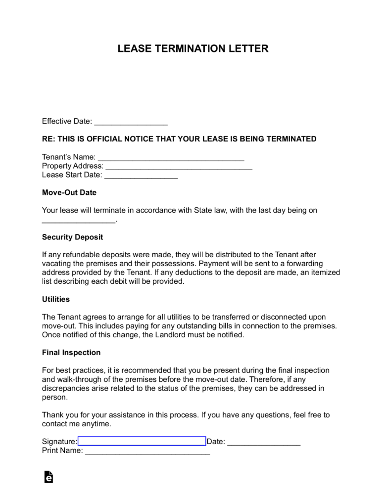Lease Termination Letter | 30-Day Notice to Vacate