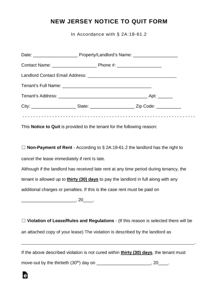 New Jersey Notice to Quit Form