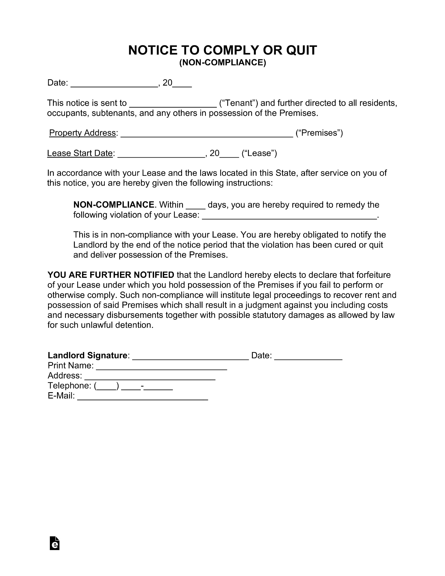 Notice to Comply or Vacate | Eviction Form