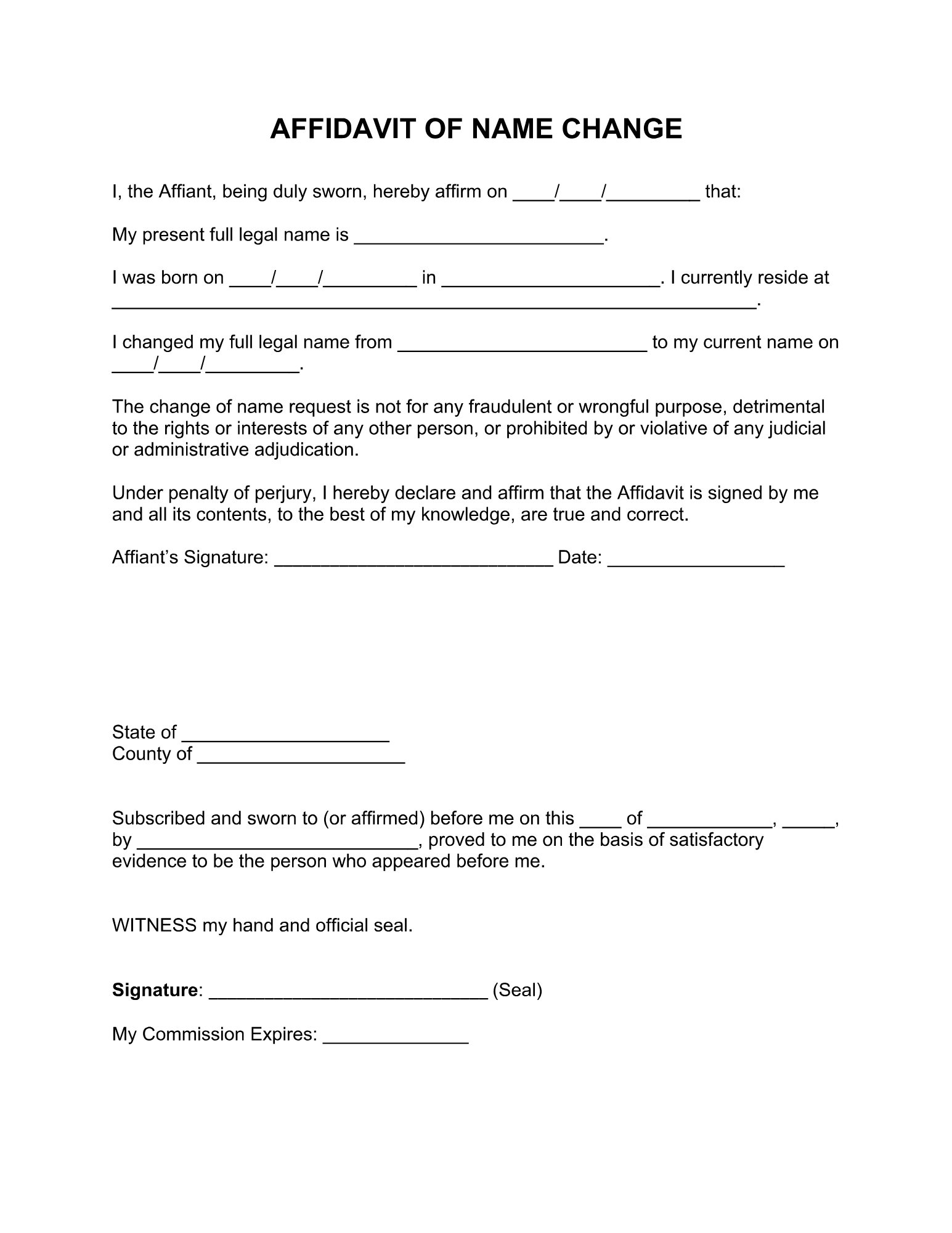 Affidavit of Name Change