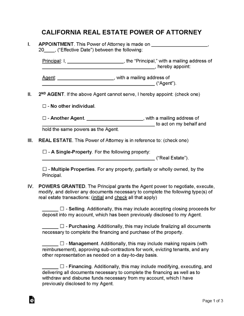 California Real Estate Power of Attorney Form