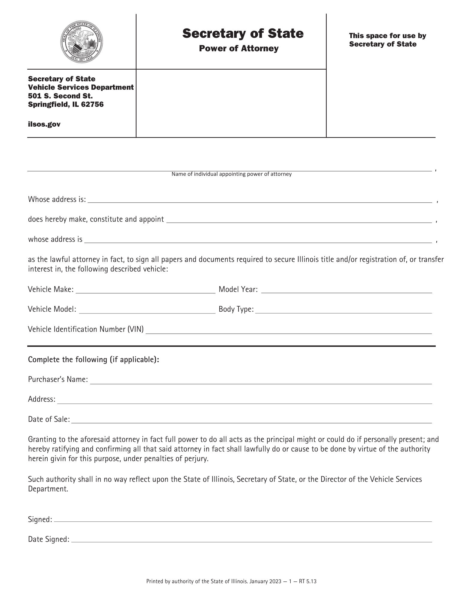 Illinois Vehicle Power of Attorney Form