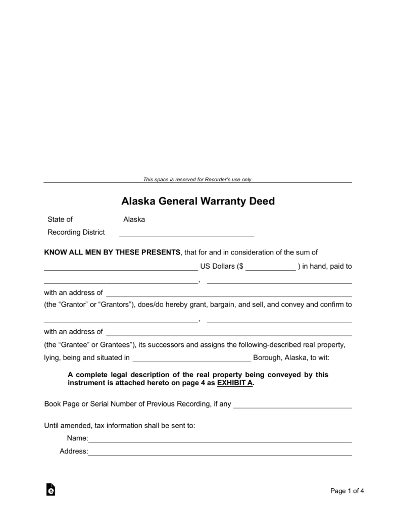 Alaska General (Statutory) Warranty Deed Form